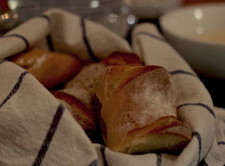 7. Jauhota patonkien pinta ja tee viistosti syviä viiltoja pintaan. Näin leipä näyttää ensinnäkin kivalta ja se myös estää leivän "räjähtämisen" uunissa.